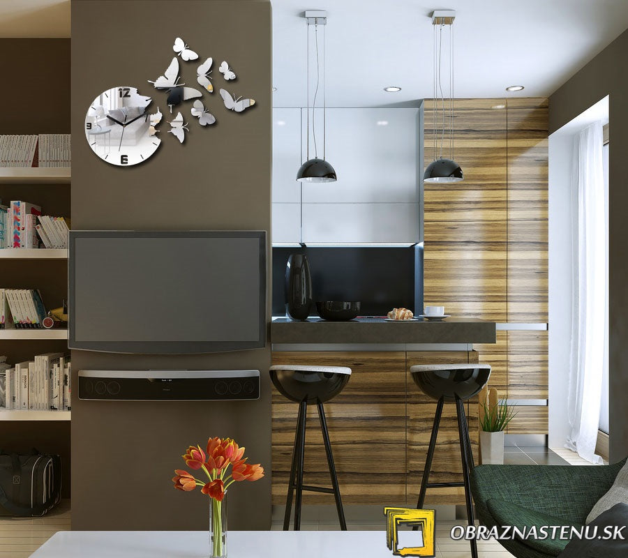 Orologio da parete moderno MIRROR BUTTERFLIES