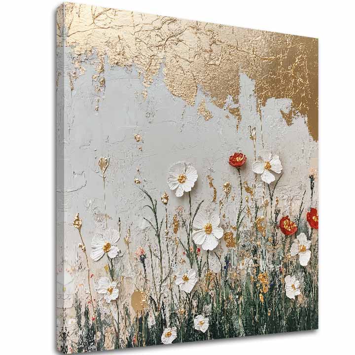 In molte culture i fiori viola simboleggiano la saggezza e il risveglio spirituale. Nei dipinti di Glamour Touch sono dipinti a mano con acrilico, conferendo loro un aspetto audace ma sereno. Ideale per gli ambienti in cui si desidera promuovere un senso di equilibrio ed eleganza.