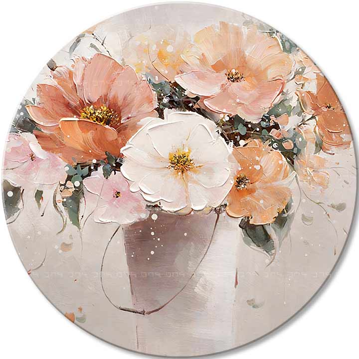 Distinti dalle tradizionali forme rettangolari, i quadri rotondi aggiungono un elemento di fluidità e di infinito visivo a qualsiasi interno. La loro forma unica espande i confini della percezione tradizionale dell'arte, aprendo nuove possibilità di composizione e design e portando dinamismo e freschezza nelle vostre case e uffici.