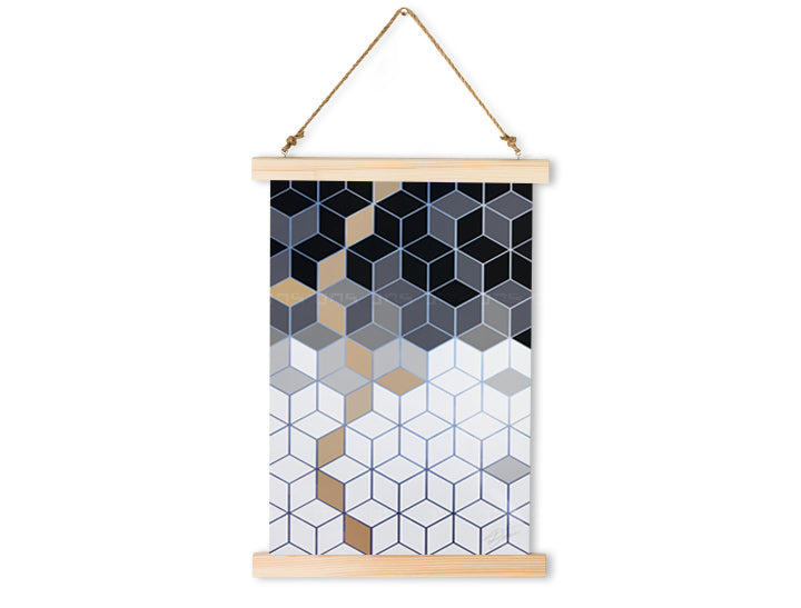 La tela sospesa è fissata su entrambi i lati con listelli di legno di abete rosso. Grazie al robusto spago, fissato al telaio in legno con apposite maniglie, è possibile appendere la tela in modo semplice ed elegante . Offriamo vari colori di listelli, che potrete abbinare alla tela in base ai vostri gusti.