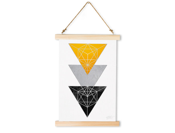 La tela sospesa è fissata su entrambi i lati con listelli di legno di abete rosso. Grazie al robusto spago, fissato al telaio in legno con apposite maniglie, è possibile appendere la tela in modo semplice ed elegante . Offriamo vari colori di listelli, che potrete abbinare alla tela in base ai vostri gusti.