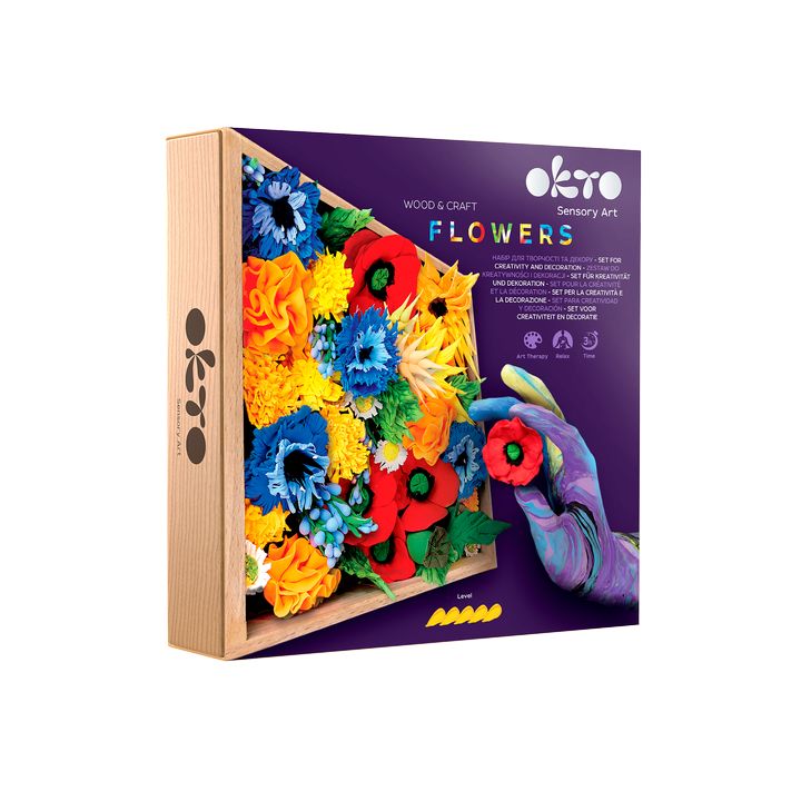 Ilset di modellazione OKTO in cornice di legno Sensory Art - Flowers è pensato per gli adulti che cercano un regalo originale o una...